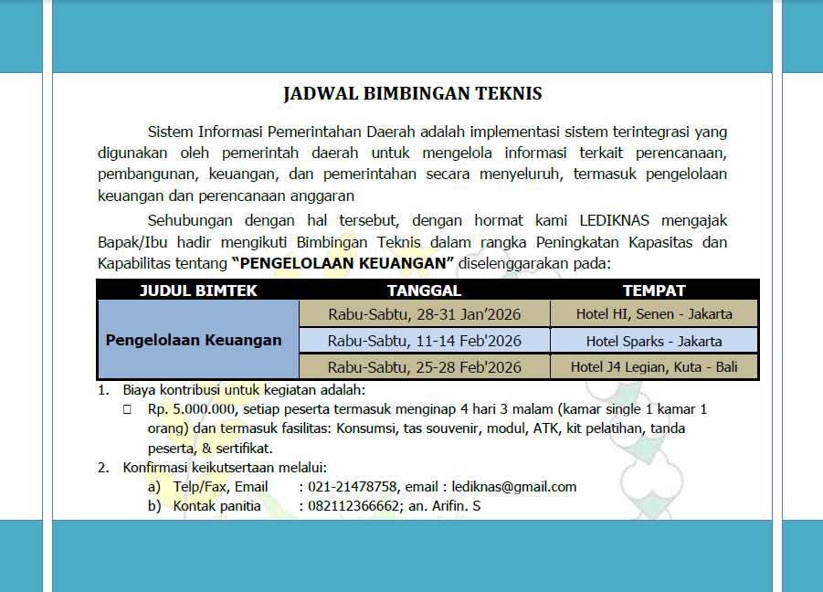 - Bimtek diselenggarakan dalam ruangan
